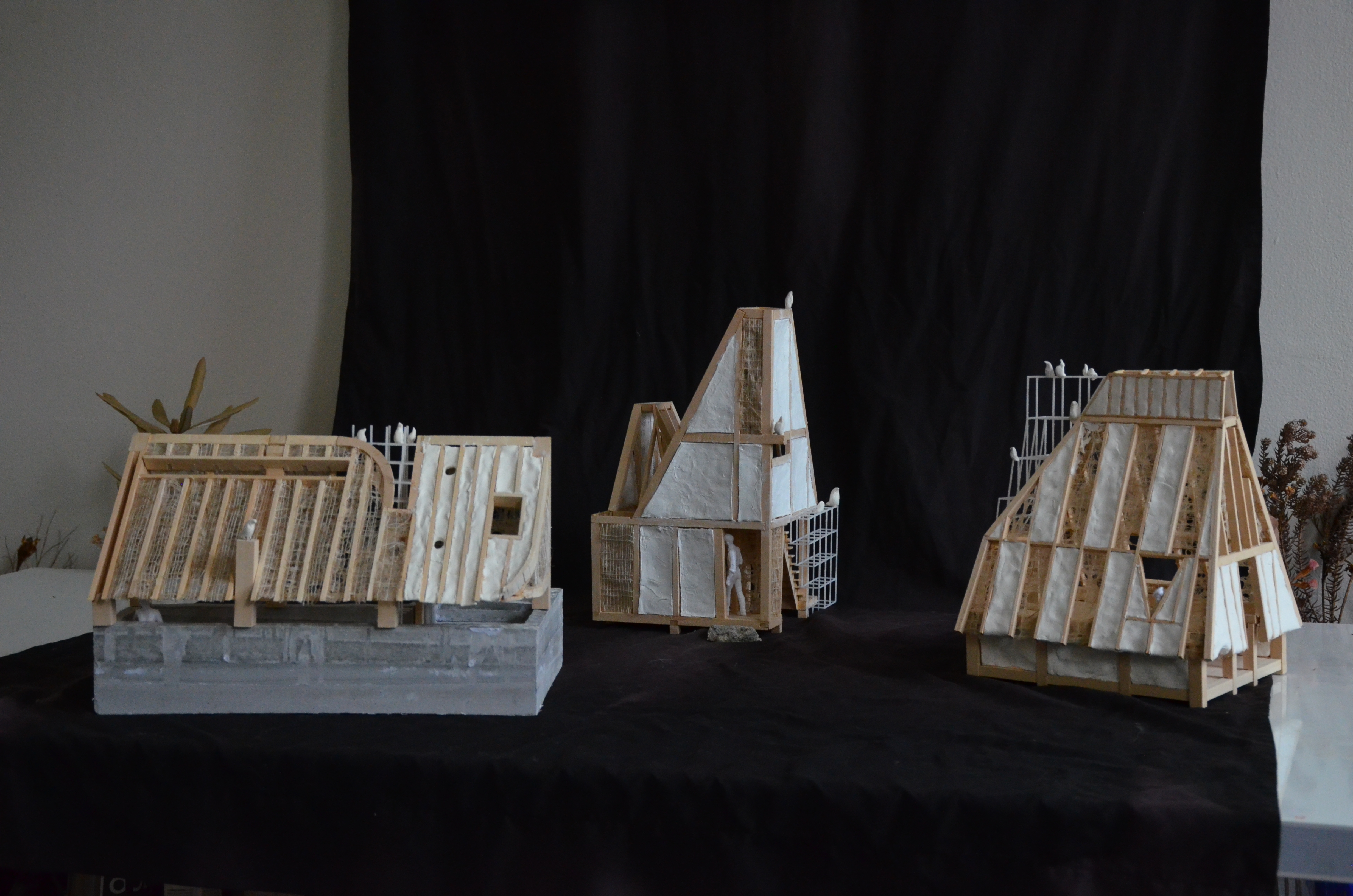 “Bird Houses” is a low-impact, sustainable design proposal which aims to create spaces for humans and wildlife to coexist in nature. It consists of a visitor center and three types of observation structures situated at different elevation points: a sunken space, a ground level cabin, and an elevated watchtower.